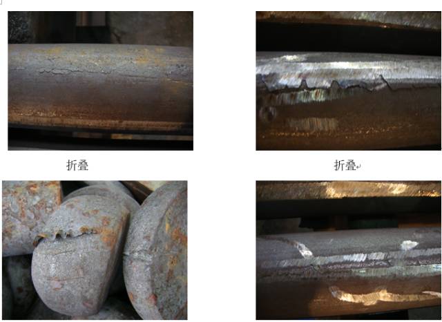 缺陷特征:沿軋制方向與鋼材表面有一定傾斜角、近似裂紋的缺陷稱折疊,一般呈直線狀,也有鋸齒狀,出現(xiàn)在鋼材的局部或全長,深淺不一,內(nèi)有氧化鐵皮,有時也呈舌狀,有規(guī)律連續(xù)分布在鋼材表面上。 鋼材表面局部重疊,有明顯的折疊紋。